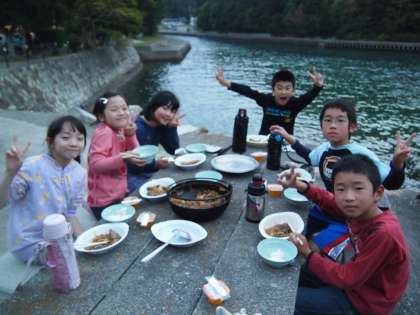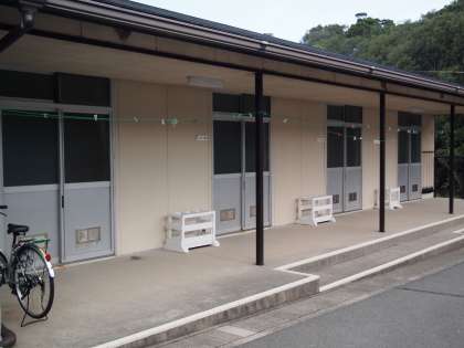 中が子ども達が泊まる90畳のある建物,下が教師の泊まるリーダー室です。