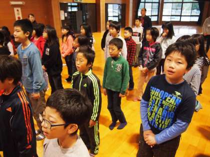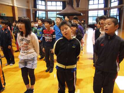 朝の集いが始まりました。校旗を揚げて校歌を歌ってスタートです。