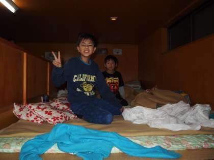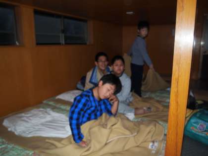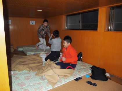 初日は女子がバンガロー,男子は90畳の大広間で寝ました。2日目はその逆です。どちらが眠りやすかったのでしょうね。