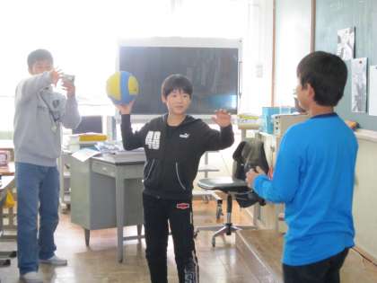 今日は2組の子たちが,デジタルカメラの前でポーズをとっていました。