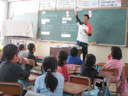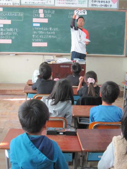 今日の1組では,大きな九九カードを使ってみんなで復習をしていました。