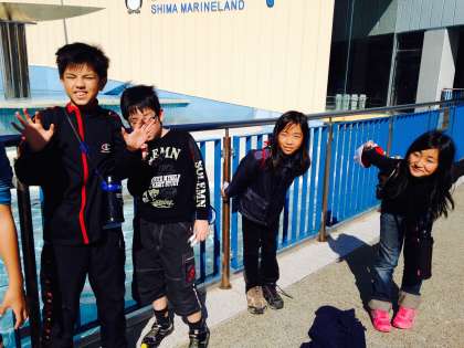 ペンギンの前ではなぜかペンギンポーズをとる子ども達です。