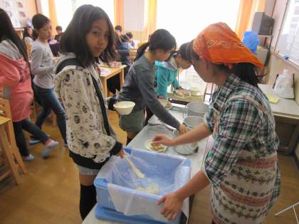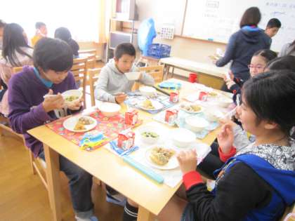 今日は,ランチルームで6年2組の子ども達が給食を食べていました。