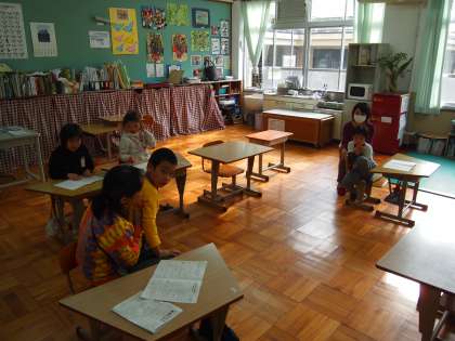 あおぞら学級です。来週の献立のお話を担任の先生から聞いていました。みんなの好きなものがありましたか?