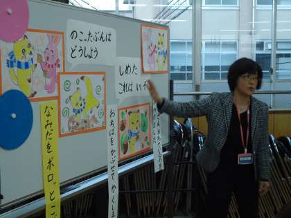 指導主事の先生から今日の事業の進め方についていろいろなアドバイスをいただきます。そこでいただいた助言は,みんなで話し合ったことと合わせて大いに今後の参考になるものです。