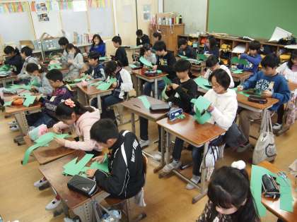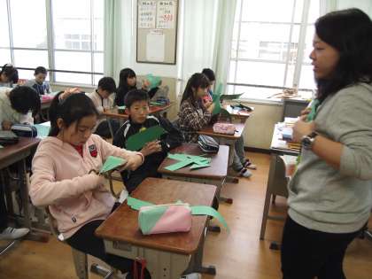 6年1組のALTの先生の授業です。「クリスマスカード作り」にトライです。