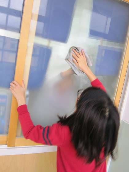 廊下のふき掃除や窓をきれいにしようと頑張る子ども達がいました。