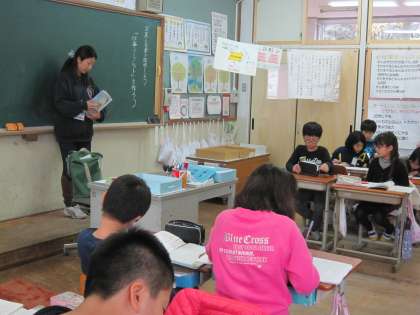 4年1組では,国語で「仕事リーフレットを作ろう」という学習中です。