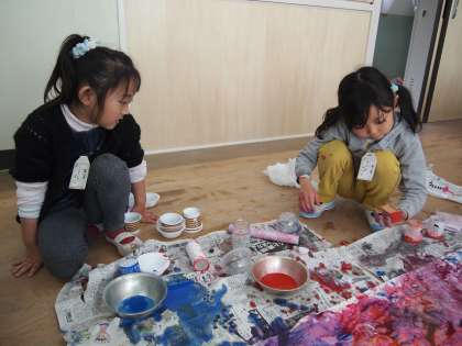 1年1組でも同じことをやっていました。おもしろいのができていましただ後片付けは大変でしょう。