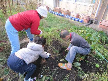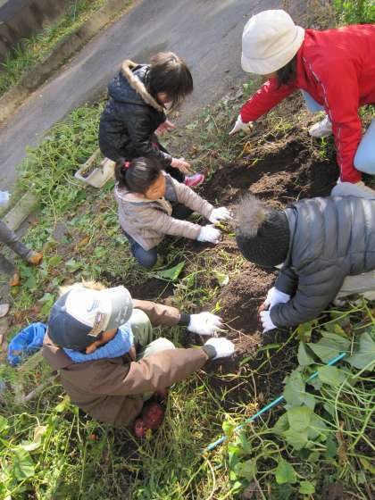 次の写真のように,大きないもがたくさん出てきて,みんな大喜びでした。