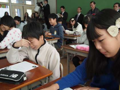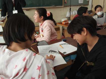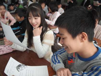 はじめは緊張で声が出ずお経のような感じになりました。そこで座って隣同士がペアになってうたいます。