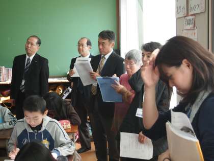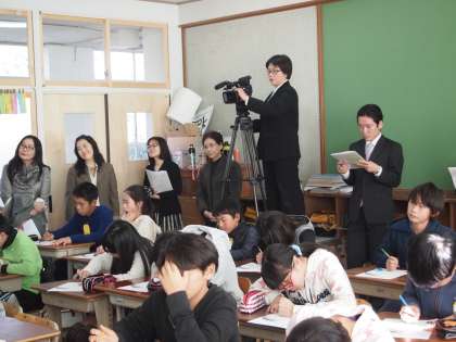 教室の後ろでは大きなビデオカメラが回っていました。良い授業をめざすためにみんなで見せてもらいます。
