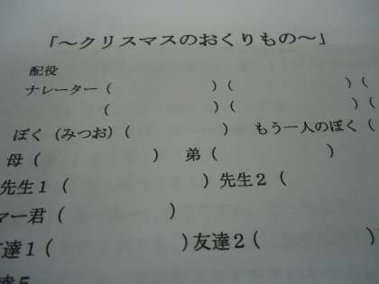 今年は くすのきしげのりさんの『おこだでませんように』をベースにした『クリスマスの贈り物』です。いつもおこられてばかりの1年生の男の子…。サンタさんに魔法のことばをプレゼントしてもらいます。さてその言葉とは?