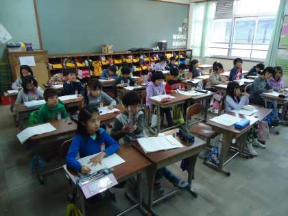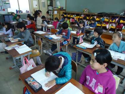 2年2組です。国語で「冬のことば」を集めています。年賀状・はねつき・おもち…いろいろな言葉が集まりました。