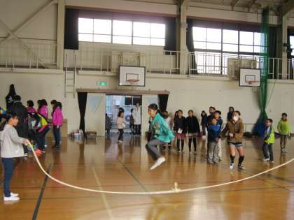 子ども達が集まるまでの間,体を動かせて待っていました。