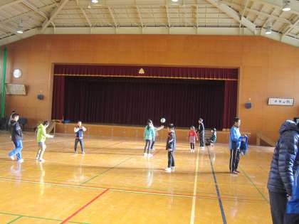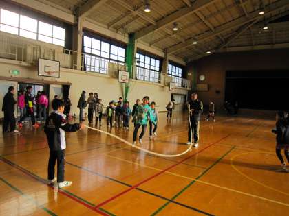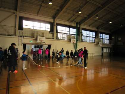 縄跳びやボール遊びをして体を温めて待っていました。