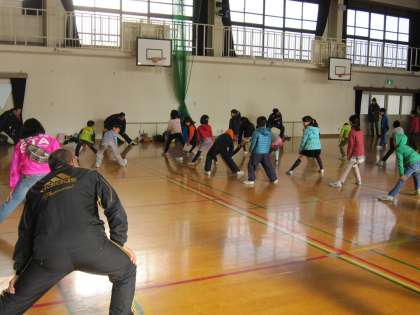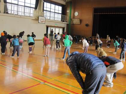 説明を聞いた後は,みんなで準備運動です。寒いので,しっかりと準備運動をしました。