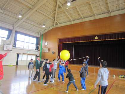 この大きなボール 思い通りにはとんでくれなくて,思いもよらないところにとんでいくようです。