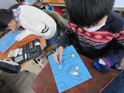 6年生も,図工で木版画に取り組んでいます。