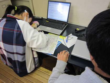 6年生は,12日(金)に市内めぐりに行きます。インターネットを使って,目的地へのルートとバスの時刻を探していました。