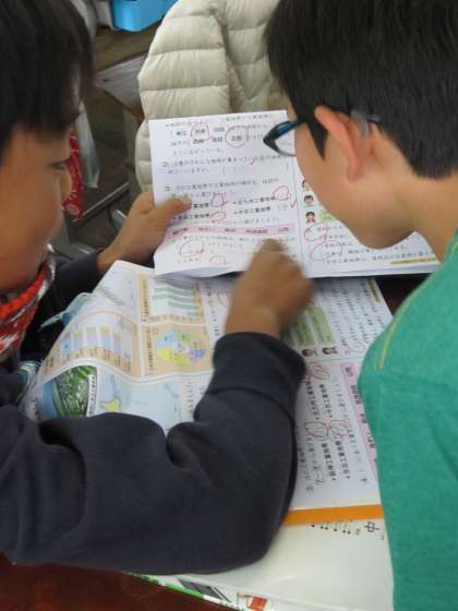 自分の机に戻ると,間違ったところを直し始める子ども達