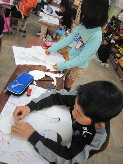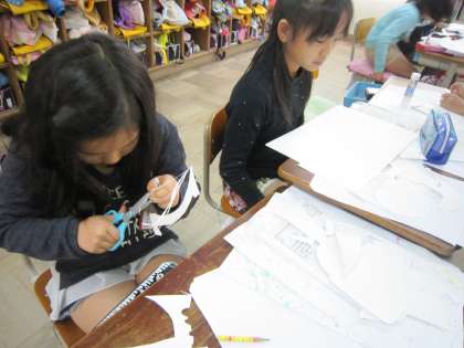 版を作るために,画用紙を切っている子もいました。