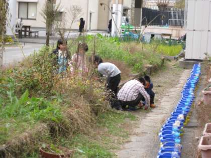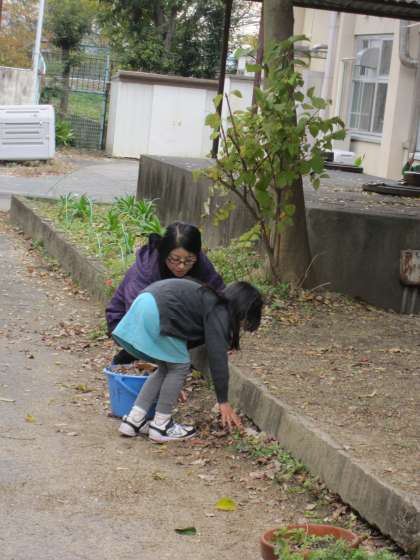 落ち葉や草を拾ったり抜いたりする子ども達がいました。