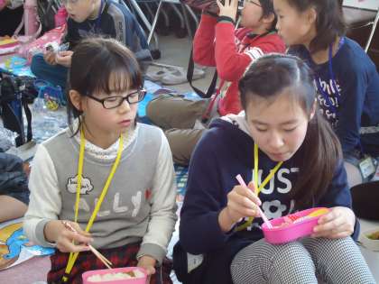 お弁当を食べながらも午後からの活動のことについていろいろ思案する子どもたちです。