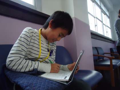 収支報告書に記入する表情も真剣です。