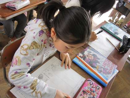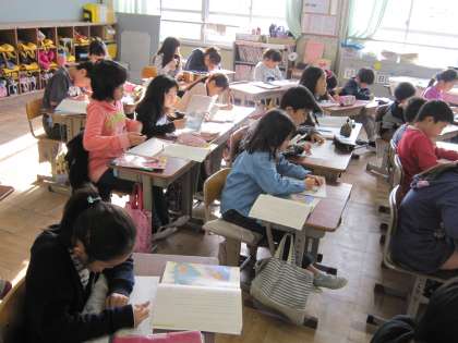 3年2組では,国語で「三年とうげ」を学習中です。