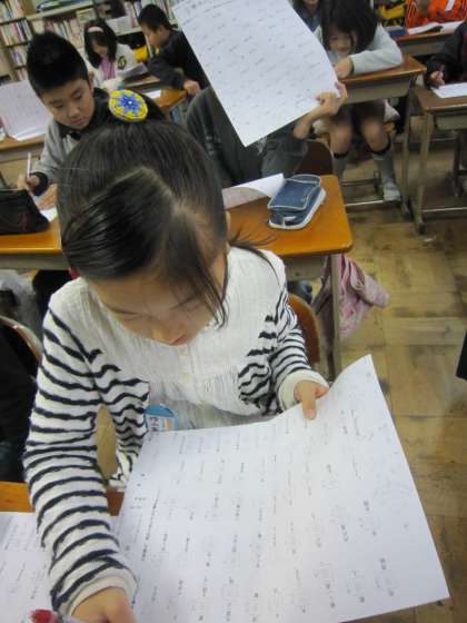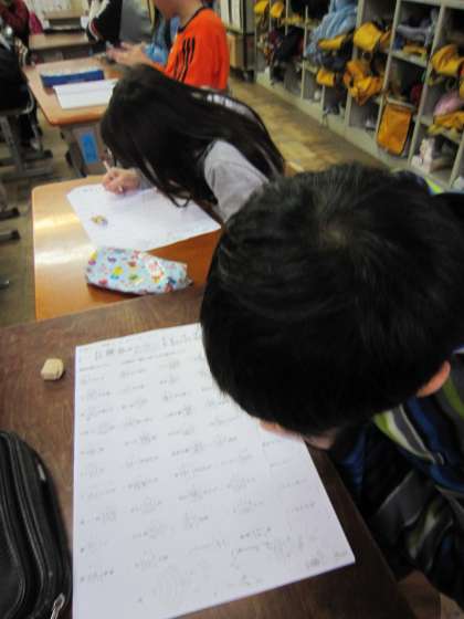 4年2組では,漢字50問の練習を重ねています。