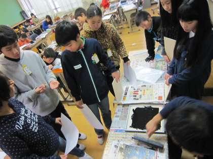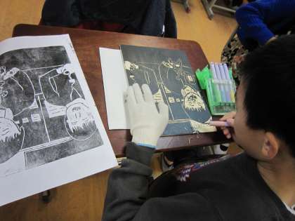 早く彫れた子達は,刷りはじめていました。