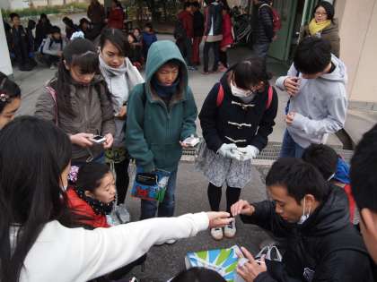 6年生の市内めぐり いよいよです。出発前にカメラ配られました。