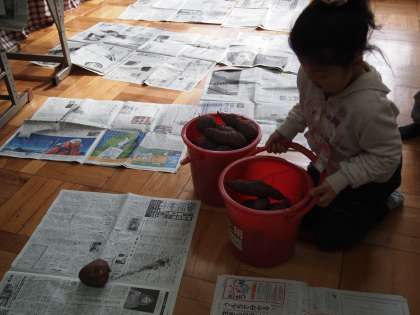あおぞら学級はこの前収穫したとってもりっぱなさつまいもを使ったケーキを作りました。
