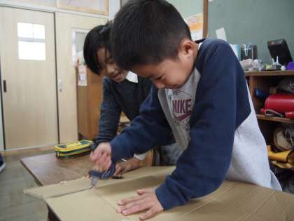 切っていくうちにいろんなことが子ども達の頭に浮かんできているようです。想像力をかき立ててくれる活動です。