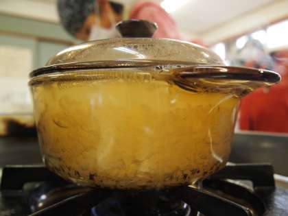 最近の調理実習はごはんを透明のお鍋で炊くようです。これだと炊ける様子がはっきりわかりますね。