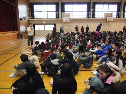 「なかよしチャレンジ」の12月のテーマは「ケンカをした時に自分にも悪いところはないかを考える」です。今日はそれを教職員による劇に仕立てて子ども達に見てもらいました。