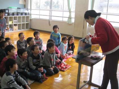 読んでもらっていた子どもたちは,途中からお話に出てくる言葉を覚えて,読み手と一緒に言うようになっていました。