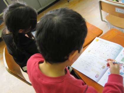 1年1組では,これまでに算数で学習してきたことをドリルを使って復習していました。