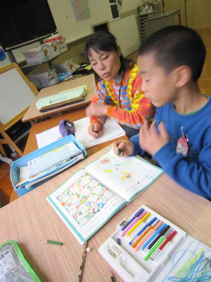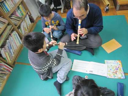 あおぞら学級では,交流学習をしている子・算数をしている子・リコーダーの練習をしている子とそれぞれの課題に合わせて学習をしていました。