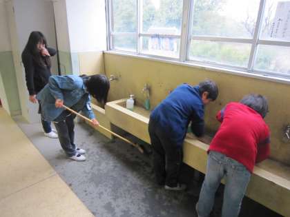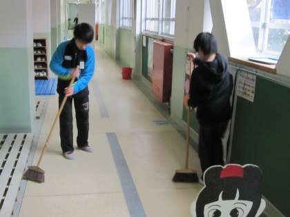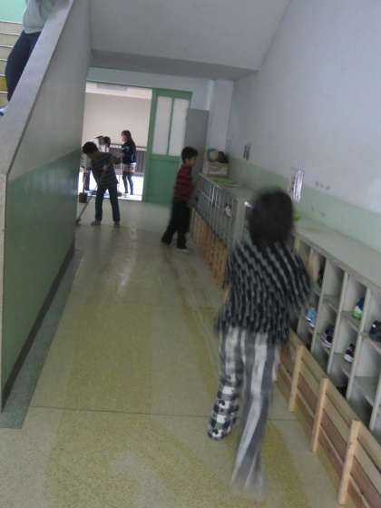 手洗い場や廊下,くつ入れの中などをきれいにしようと頑張っている子ども達がいました。