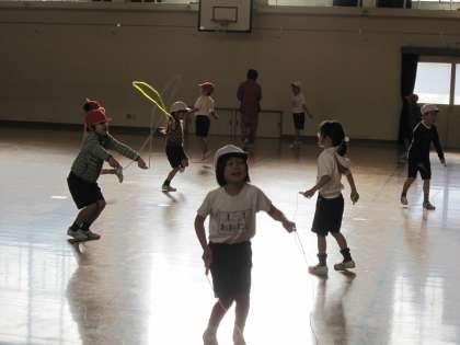 1年生は,体育館で「なわとびあそび」を楽しんでいました。