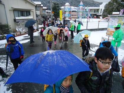 雪の中の「おはようございます」