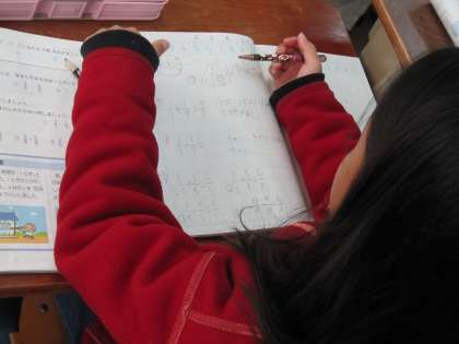 3年1組では,算数の時間に練習問題に取り組み,答え合わせをしていました。