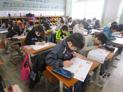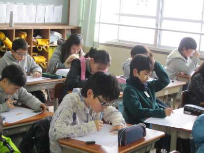 5年2組では,国語の「千年の釘にいどむ」の学習を終え,自分の力を確かめようとテストに臨んでいました。