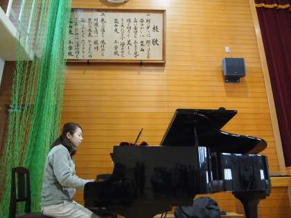 今年最後の朝会です。まずは校歌を歌います。体育館は寒い!