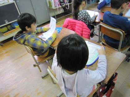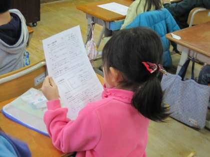 1年1組では,子ども達がもらった保健だよりを見ていました。