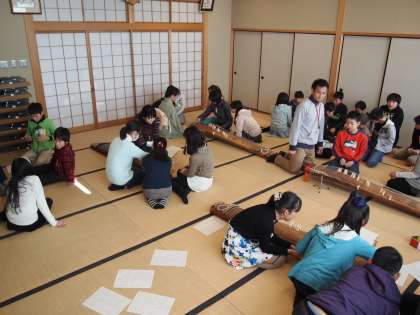 地域の先生に来ていただきお琴の「イロハ」を教えていただきました。