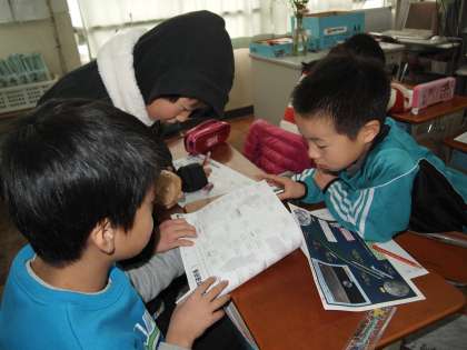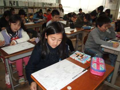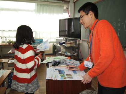 4年2組です。短い歌に織り込まれた県名を地図と共に覚えます。