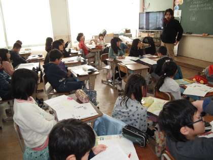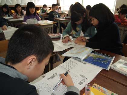 4年1組でもよく似たことをしていました。こちらは白地図に県名シールを貼っていきます。